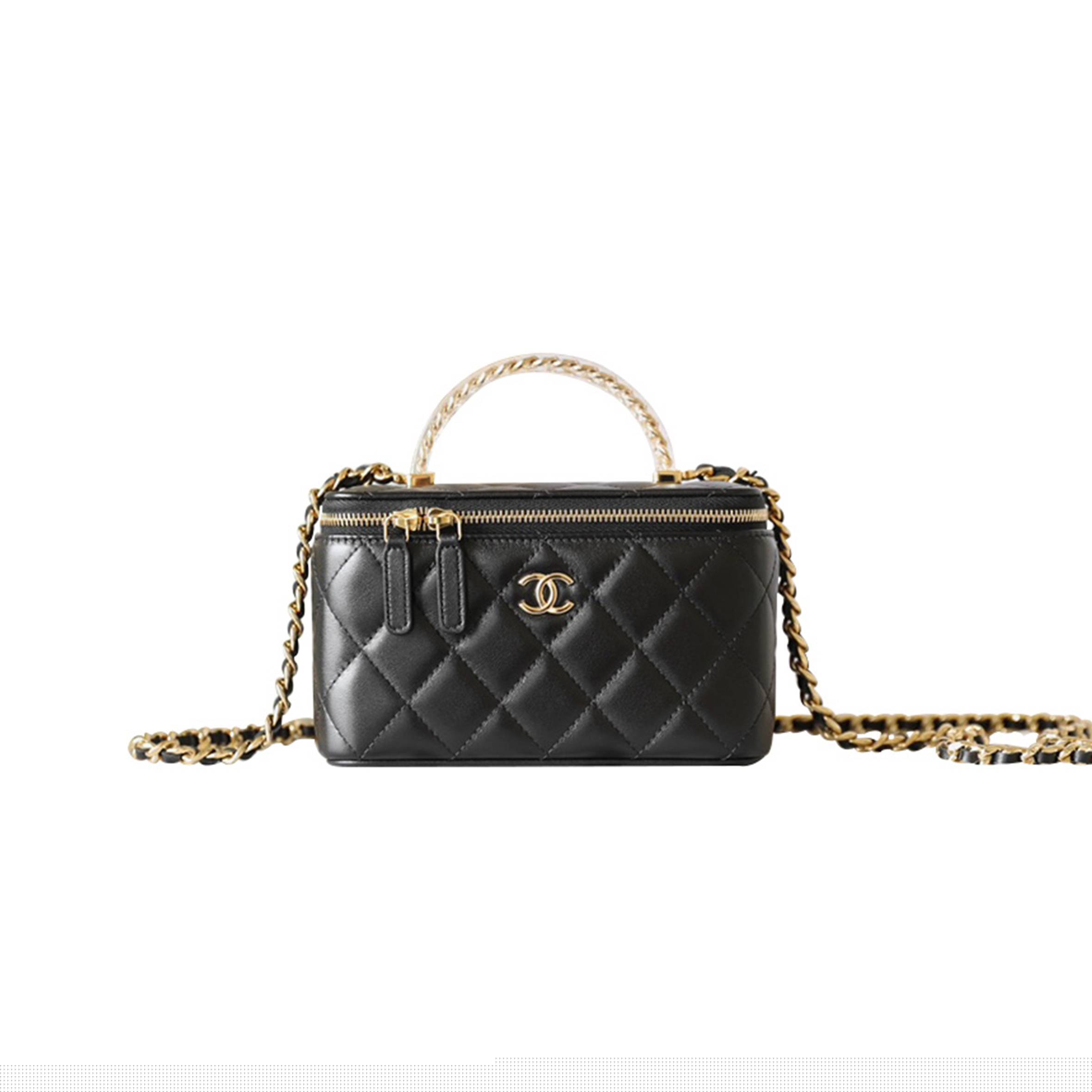 Ch*el master mini matelasse lambskin 2way shoulder bag top handle black gold metal as4848 (19*12*6cm)