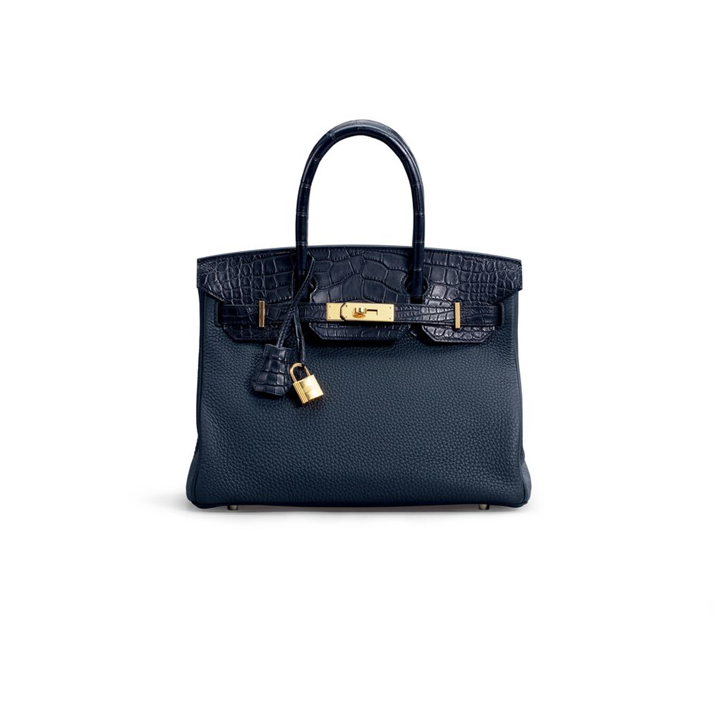 HERMÈS MASTER BIRKIN 25 CROCODILE AND TOGO LEATHER DEEP BLUE WITH GOLD BUCKLE H076216CK28 (25*20*13cm)