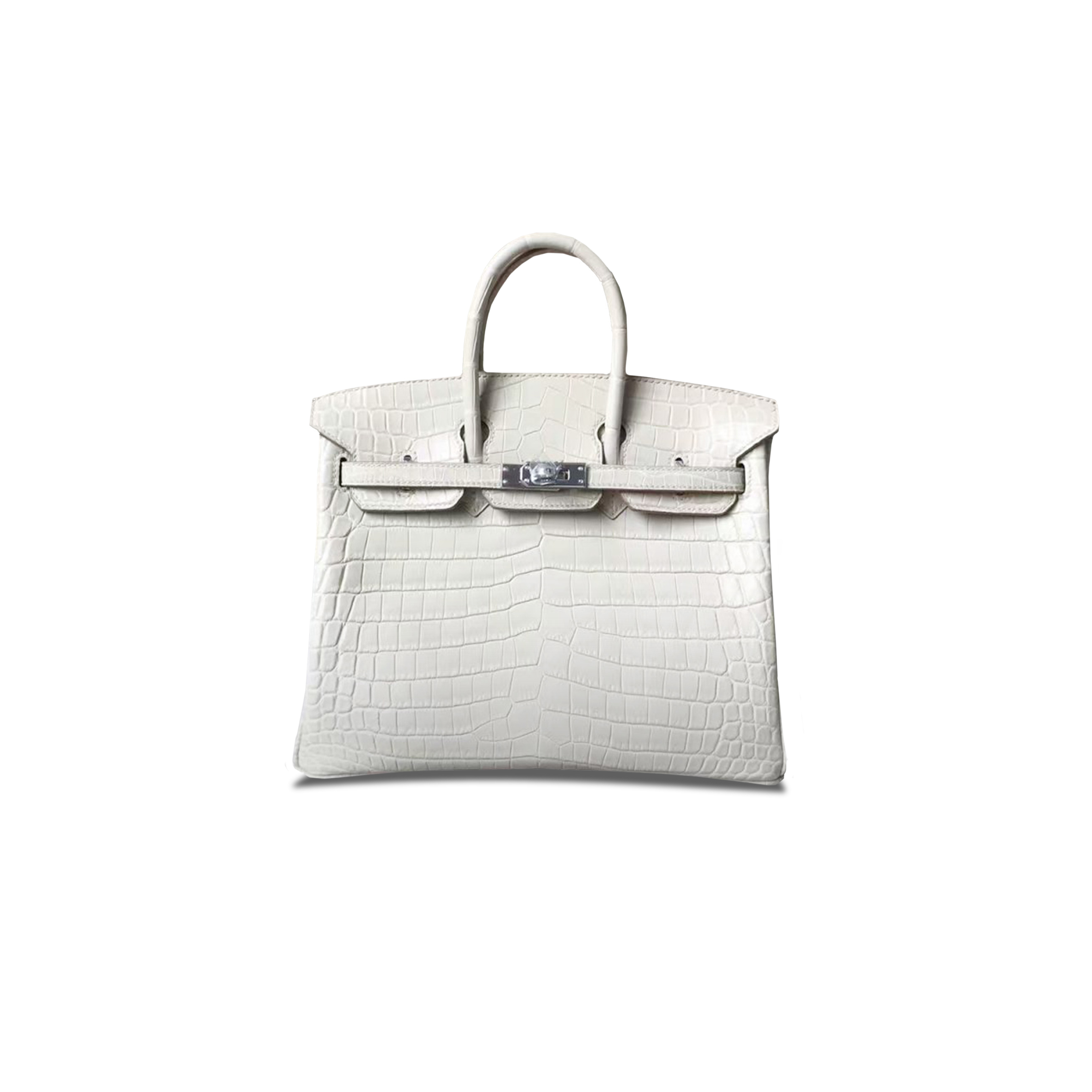 H**mes master birkin 25 8l cream white matte crocodile silver buckle bag 4034389225 (25*20*13cm)