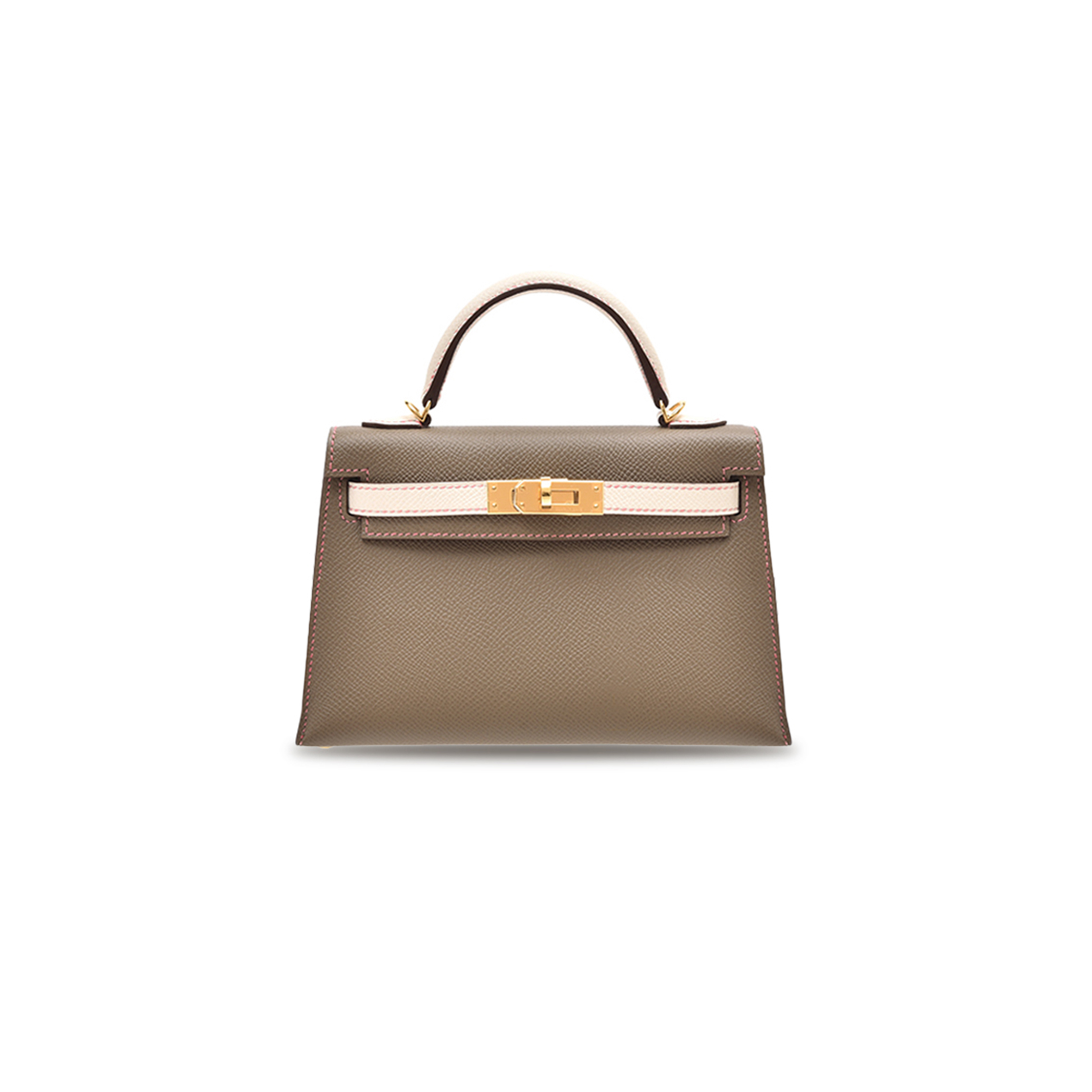 HERMÈS MINI KELLY II EPSOM ELEPHANT GRAY AND MILKSHAKE WHITE GOLD BUCKLE (19*12*5.5cm)