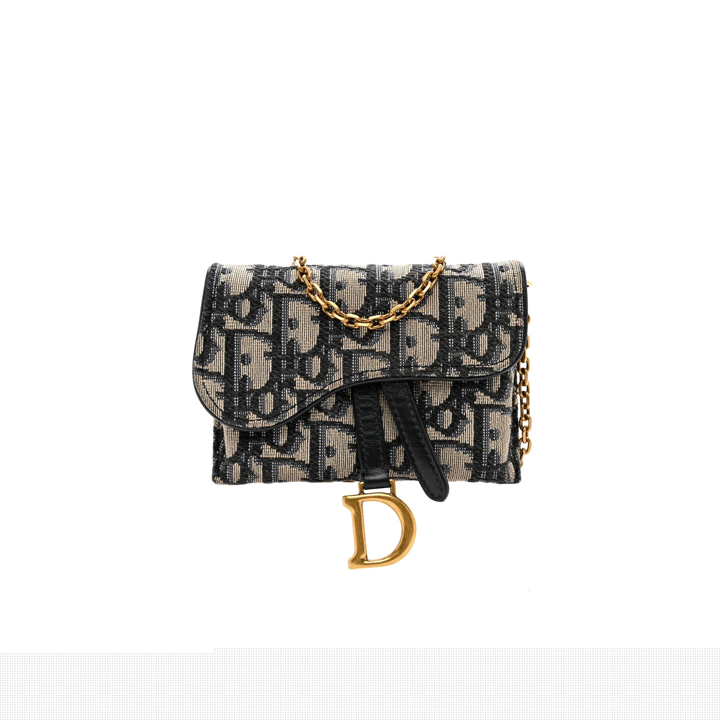 D*or oblique nano saddle chain pouch blue (11*9*2.5cm)