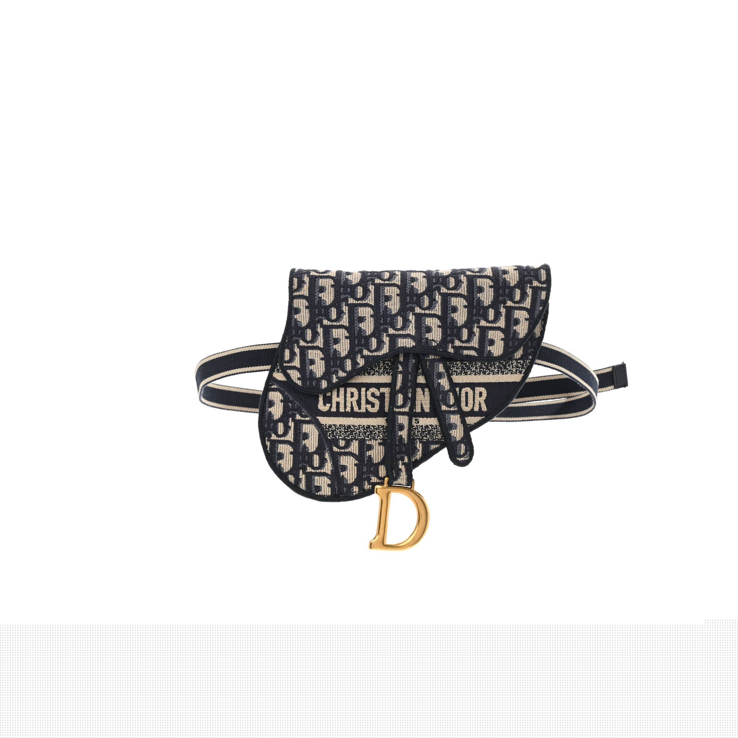 D*or oblique embroidered saddle belt pouch blue (24*17*2.5cm)